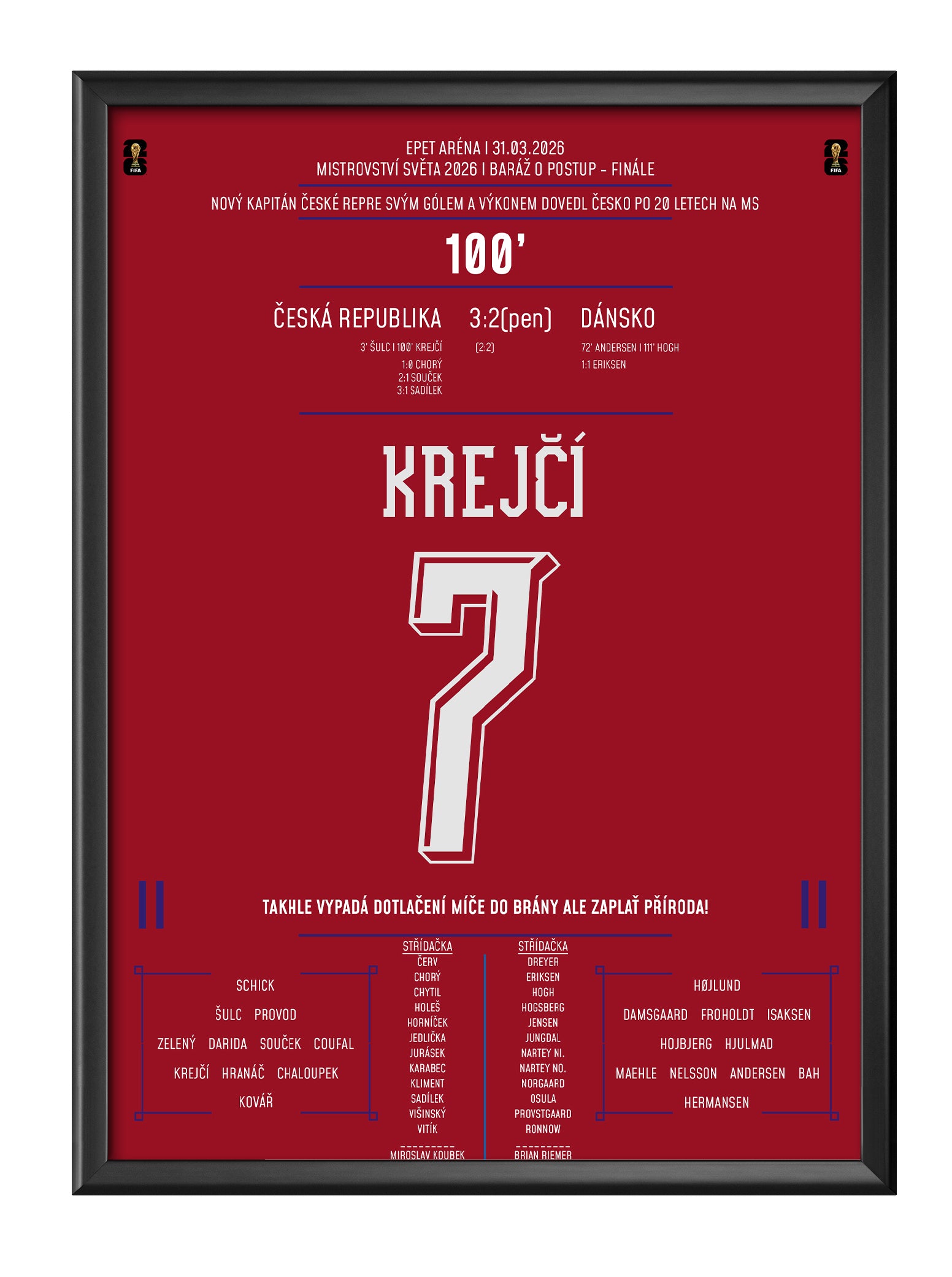 Plakát s památným momentem je vytištěný na těžkém a lesklém prémiovém papíře s plnými barvami a leskem, který zvýrazní každý detail.
